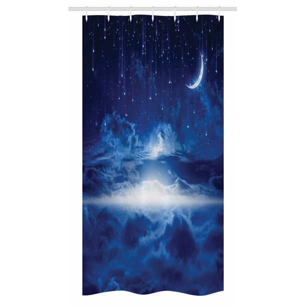 Fantasy Stall Shower Curtain Night Sky With Moon Falling Stars Clouds Horizon Mysterious Space Art Fabric Bathroom Set With Hooks 36w X 72l Inches Long Navy Blue And White By Ambesonne